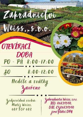 Otevírací doba prodejny Zahradnictví Weiss